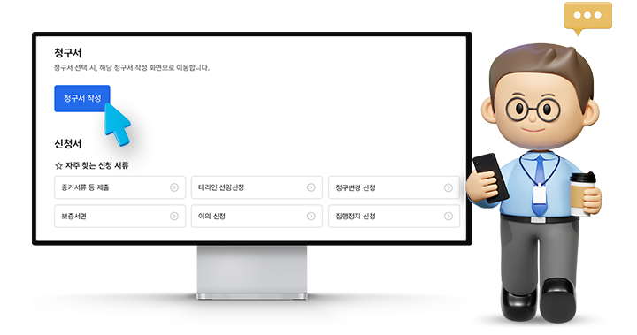 청구서 및 신청서를 선택하여 등록하실 수 있습니다.
